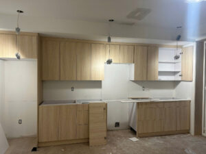 The cabinetry looks great already, even before everything was fully finished. The wood tone is beautiful and the layout works perfectly for the space. You can really see the quality and attention to detail.